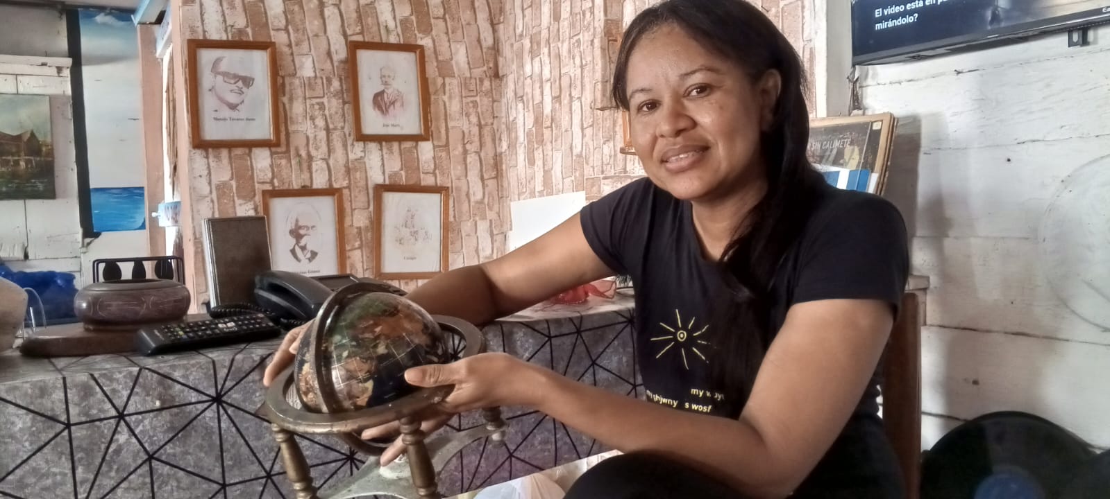 Además de dominar el arte culinario, también es una artista de las palabras maneja con detalles la historia de cada una de las piezas y cuadros mostrados en la parte interior del restaurant. Cuenta que alguien descubrío lo que es el mayor atractivo del negocio el arbol de los 100 rostros.