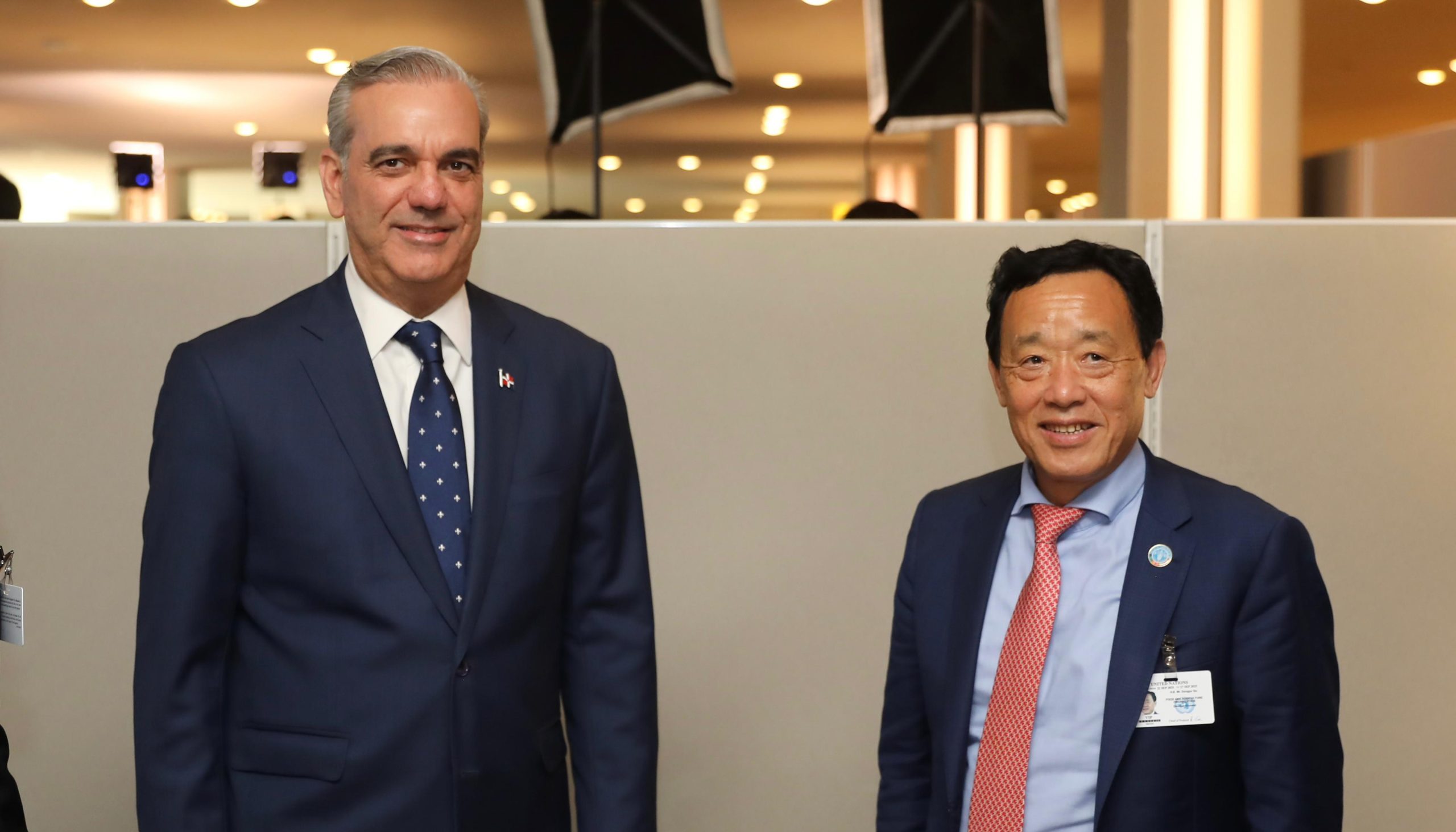 NUEVA YORK. – El presidente Luis Abinader sostuvo este martes una reunión bilateral con el director general de la Organización de las Naciones Unidas para la Alimentación y la Agricultura (FAO), Qu Dongyu, en la sede de las Naciones Unidas.
